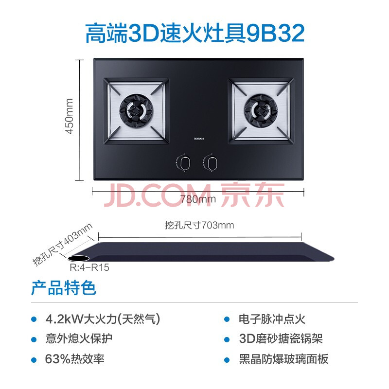 商品相册:老板( Robam )欧式 2倍风压 超大吸力抽油烟机燃气灶套装8229S+9B32(线下同款)第