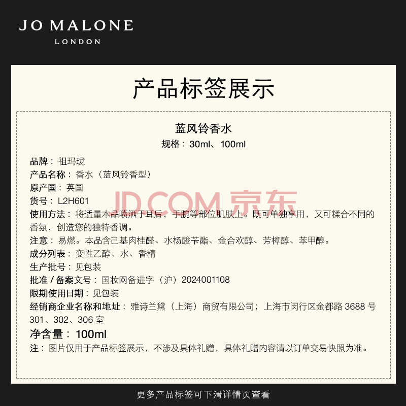 商品相册:祖玛珑香水 蓝风铃香水100ml 生日礼物送女生 礼盒第