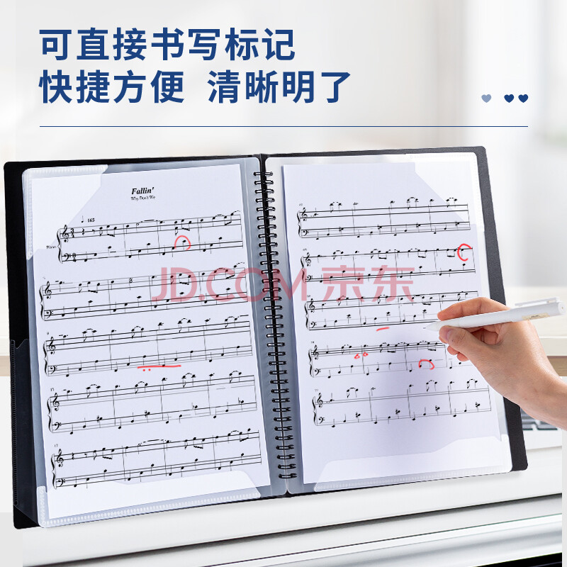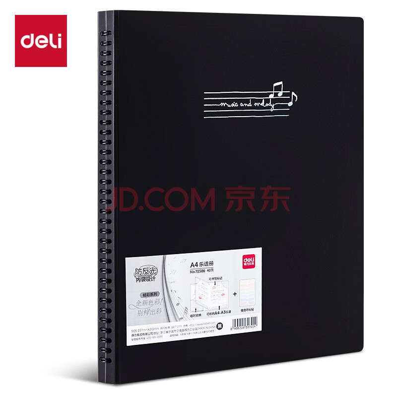 商品相册:得力(deli)(deli)A4/20张40页乐谱夹可书写资料册琴谱夹钢琴文件夹资料册 吉他古筝谱夹子五线谱夹 黑色72586第