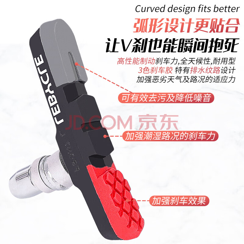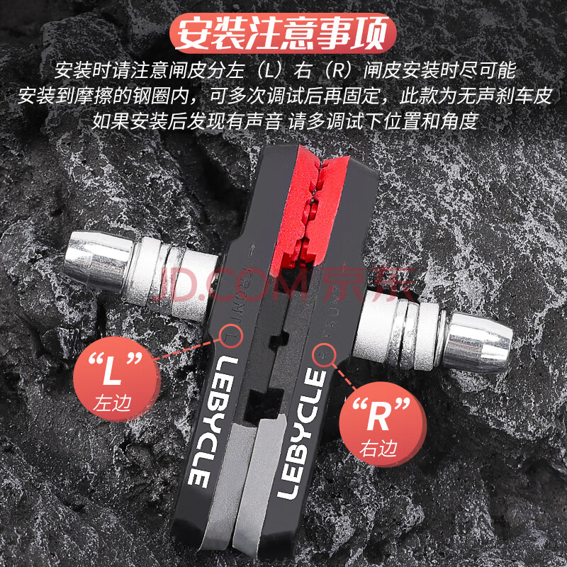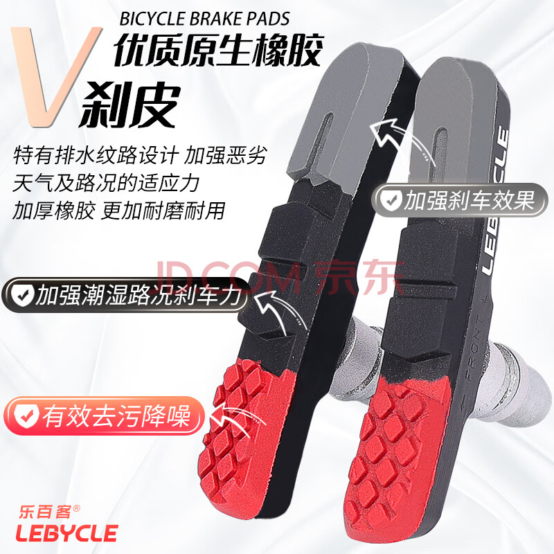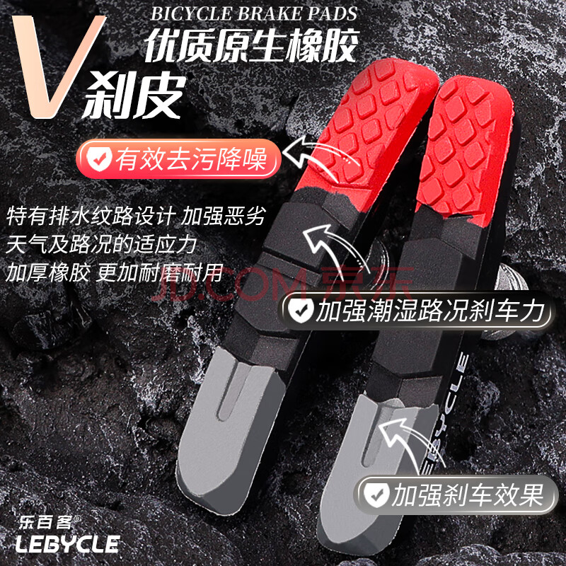 商品相册:乐百客(LEBYCLE)山地自行车刹车皮通用V刹夹器刹车块无声耐磨橡胶闸皮配工具第