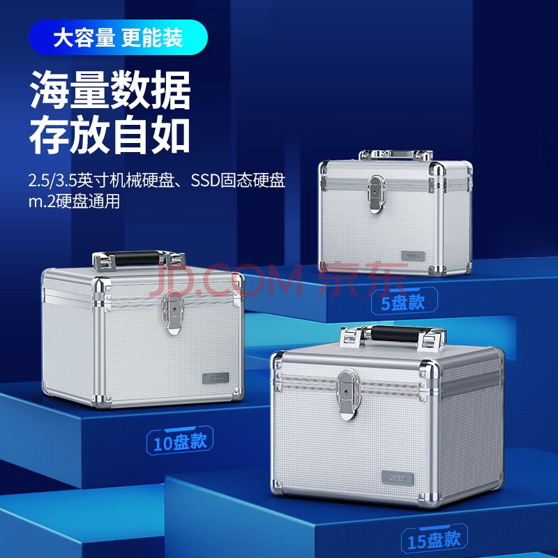 商品相册:优越者 (UNITEK)3.5英寸硬盘保护箱 十盘位手提式保护收纳盒带锁扣 防水/防盗/防潮/防震 银色 OT30SL第