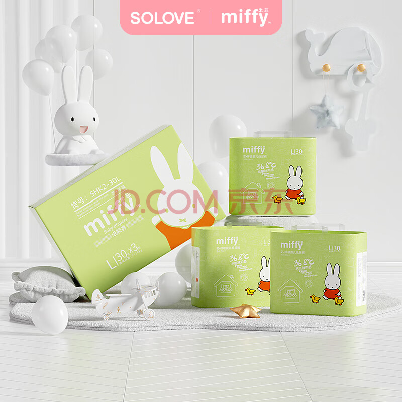 商品相册:solove米菲芯呼吸纸尿裤L30片(9-14kg)尿不湿 春夏透气纸尿裤单包第