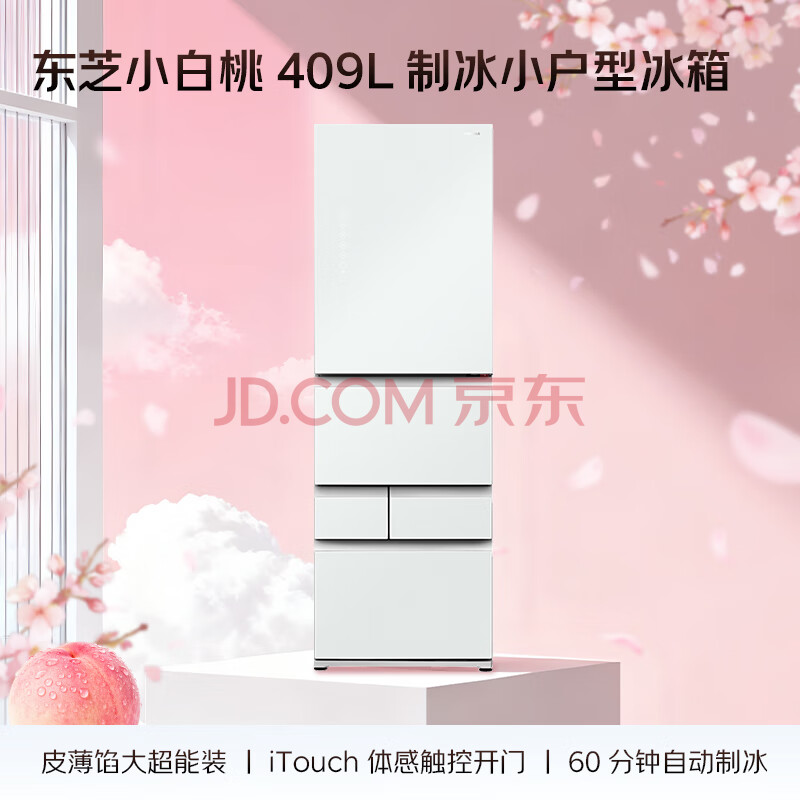 商品相册:东芝(TOSHIBA)小白桃409L五门日式多门冰箱429嵌入式自动制冰玻璃面板小户型GR-RM429WE-PG2B3第