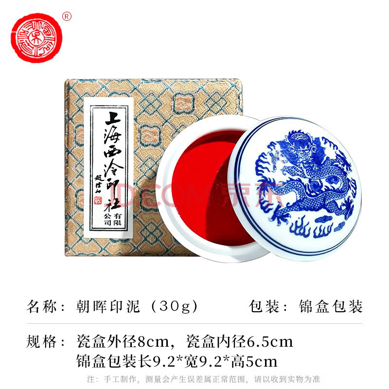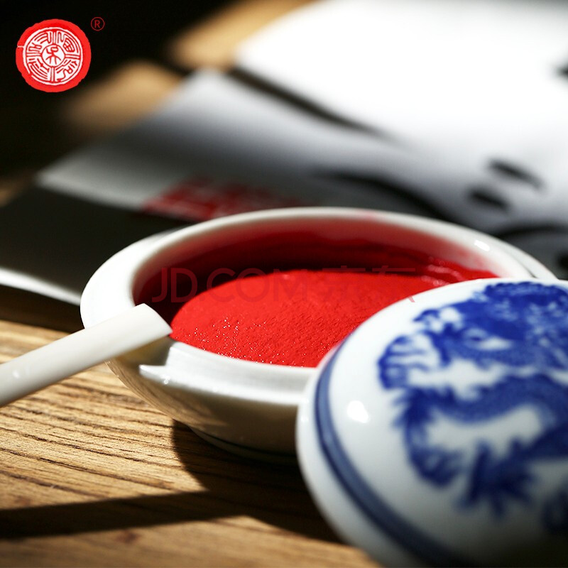 商品相册:【全网低价】荣宝斋 西泠印泥上海西泠印社潜泉 书法绘画篆刻印章古法红色龙泉书画印泥锦盒 朝晖印泥30克第