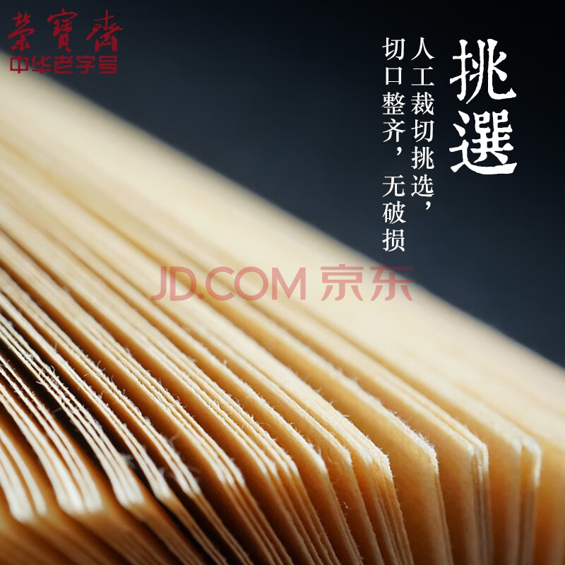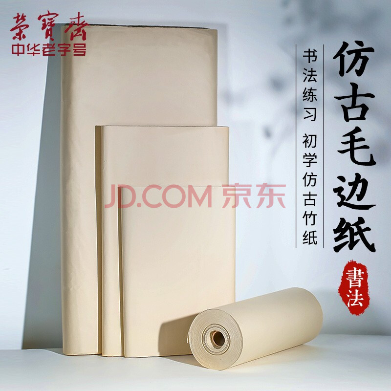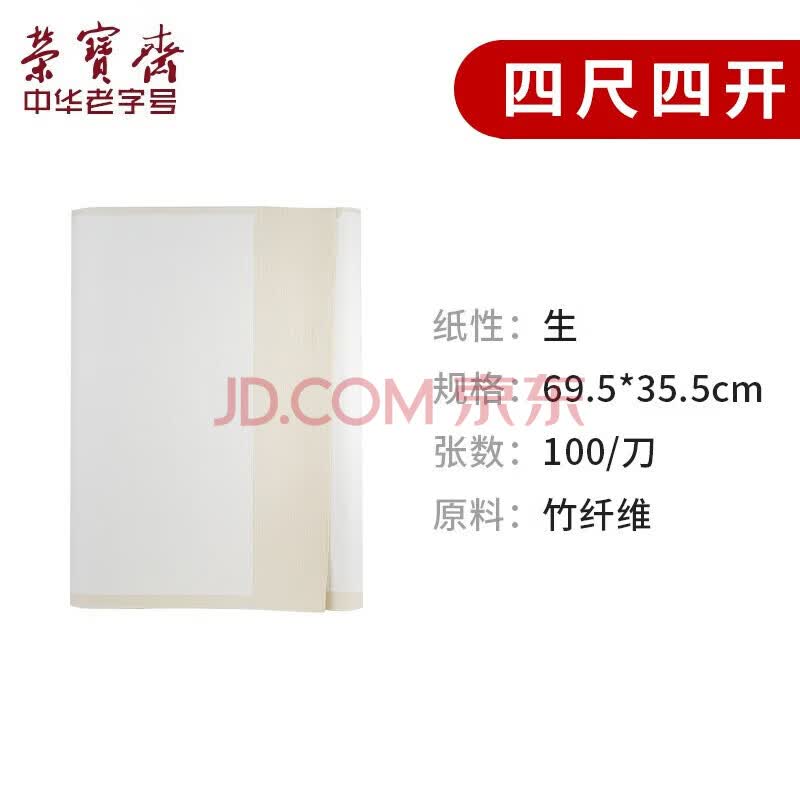 商品相册:荣宝斋书画宣纸 日星宣纸仿古毛边纸书法毛笔字纸初学者练习纸加厚元书纸竹浆 生宣四尺四开100张/刀第