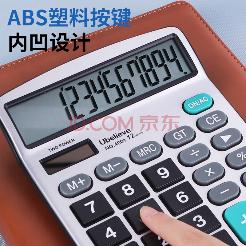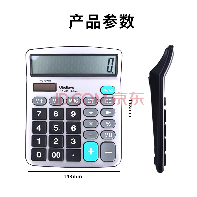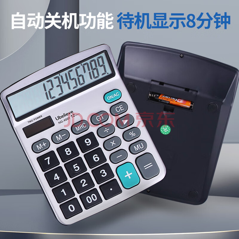 商品相册:优必利双电源桌面办公计算器 财务家用计算机 太阳能计算器 12位大屏幕计算机 4001第