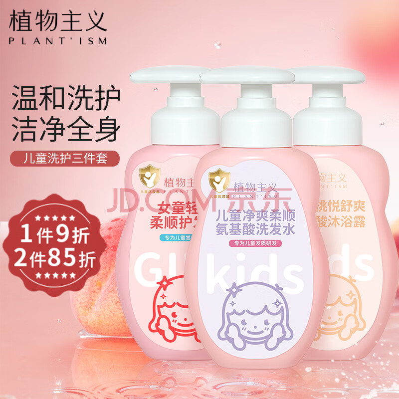 商品相册:植物主义儿童洗发水沐浴露护发素套装3-12岁儿童专用男女孩柔顺发丝不毛躁第