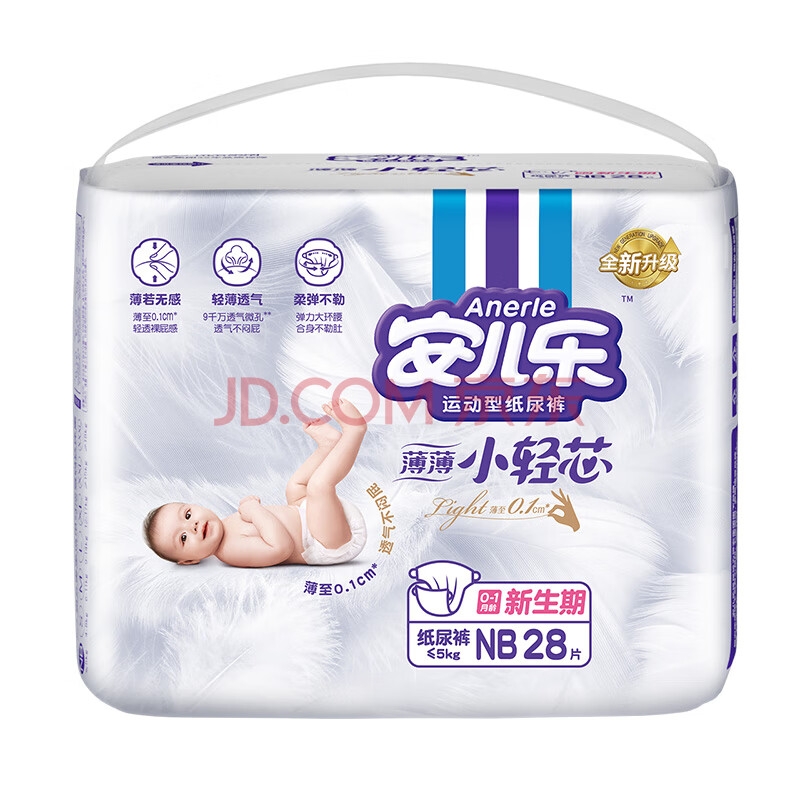 商品相册:安儿乐(Anerle)小轻芯纸尿裤NB28片(5kg以下)新生儿尿不湿【品牌直供 安心品质】第