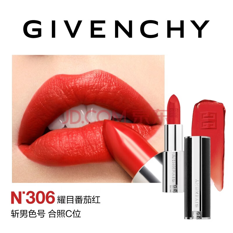 商品相册:纪梵希(Givenchy)小羊皮N306番茄红色口红唇膏斩男色化妆品 生日礼物送女生送闺蜜第