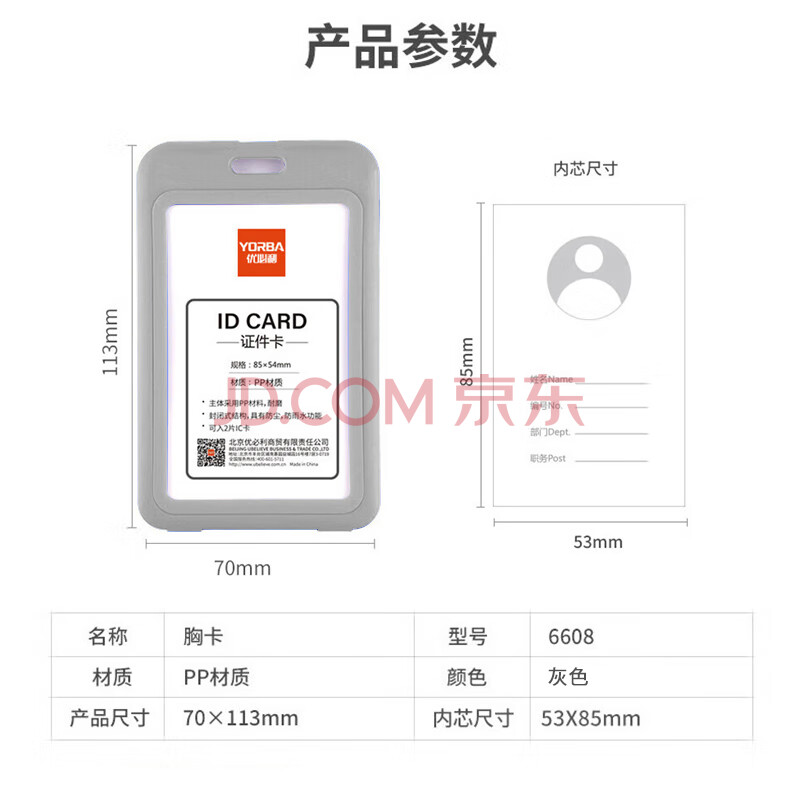 商品相册:优必利 商务证件卡工作牌竖式带挂绳员工胸牌厂牌员工出入证 6608灰色 5套第