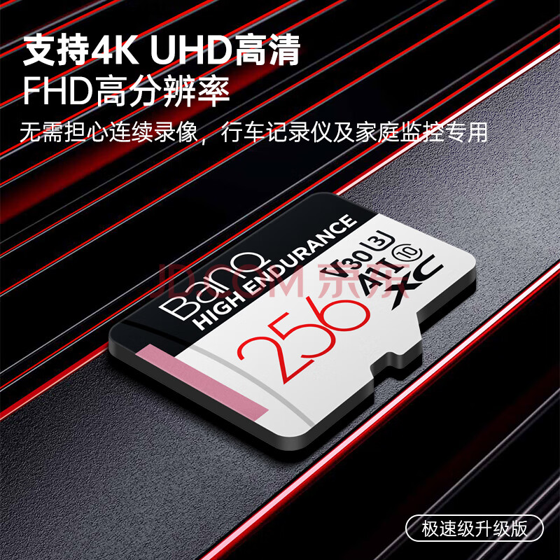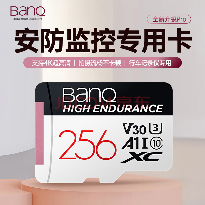 商品相册:banq 256GB TF(MicroSD)存储卡 A1 U3 V30 4K 行车记录仪&安防监控专用内存卡 高度耐用第