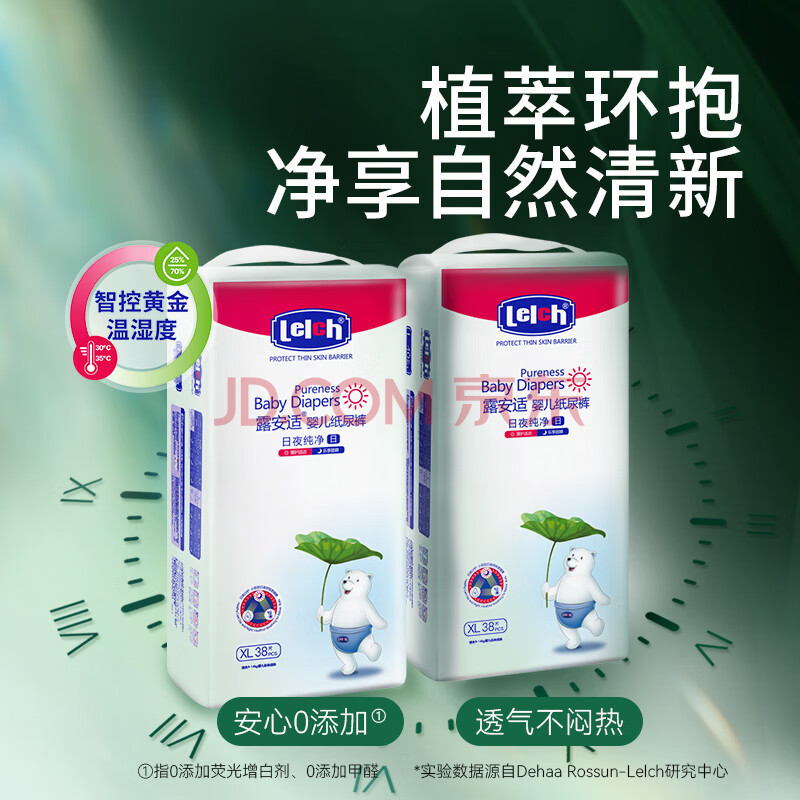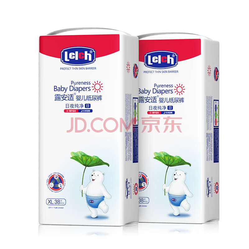 商品相册:露安适(Lelch)日夜纯净pure箱装纸尿裤XL码76片(12-17kg)日用婴儿大号尿不湿第