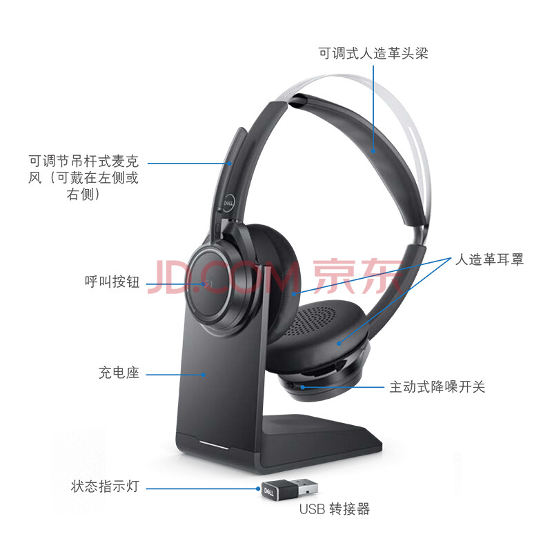 商品相册:戴尔 Premier 主动式降噪无线耳机 - WL7022 主动式降噪 HI-FI高保真 智能传感器 办公耳机第