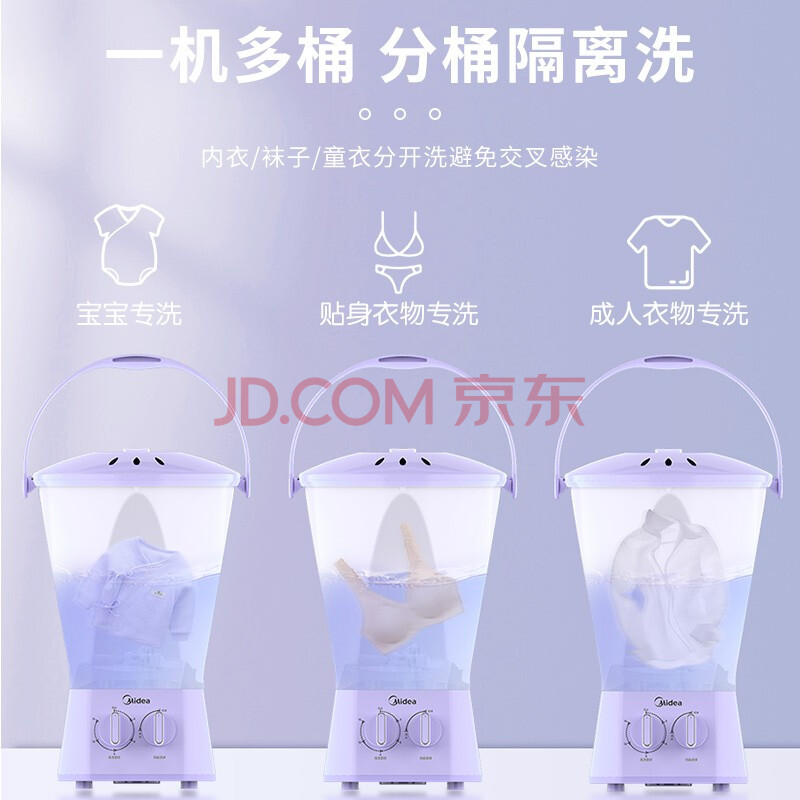 商品相册:美的(Midea)内衣裤分桶洗衣机便携式洗袜子机迷你半自动家用宿舍婴儿童换桶洗衣机(一机二桶) MFB18-22S第