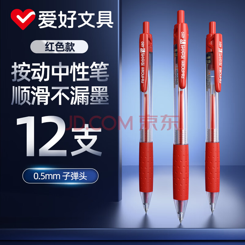 商品相册:爱好(AIHAO)【开学必备】签字笔0.5mm按动中性笔子弹头教师批改红笔标记纠错水笔办公用品12支 489第