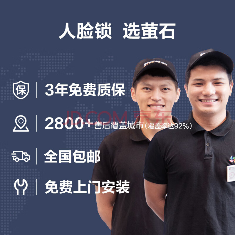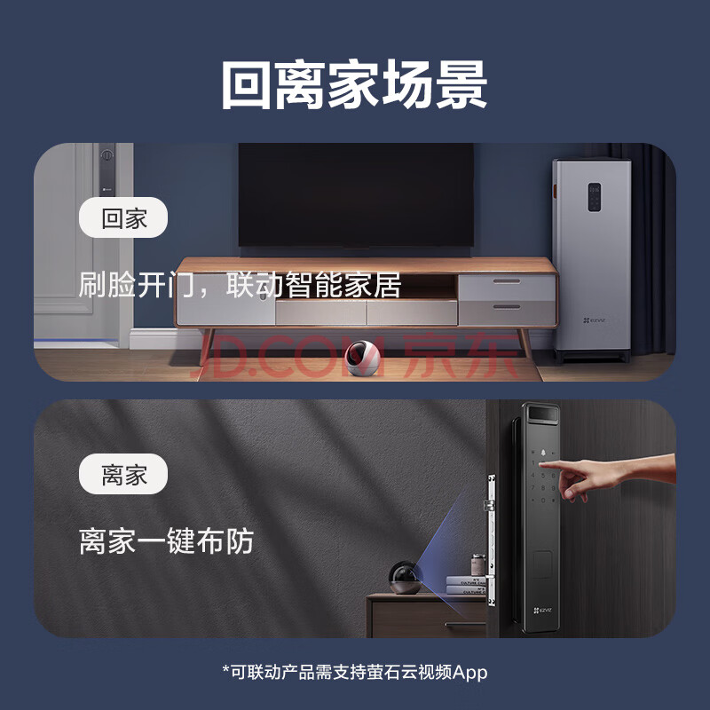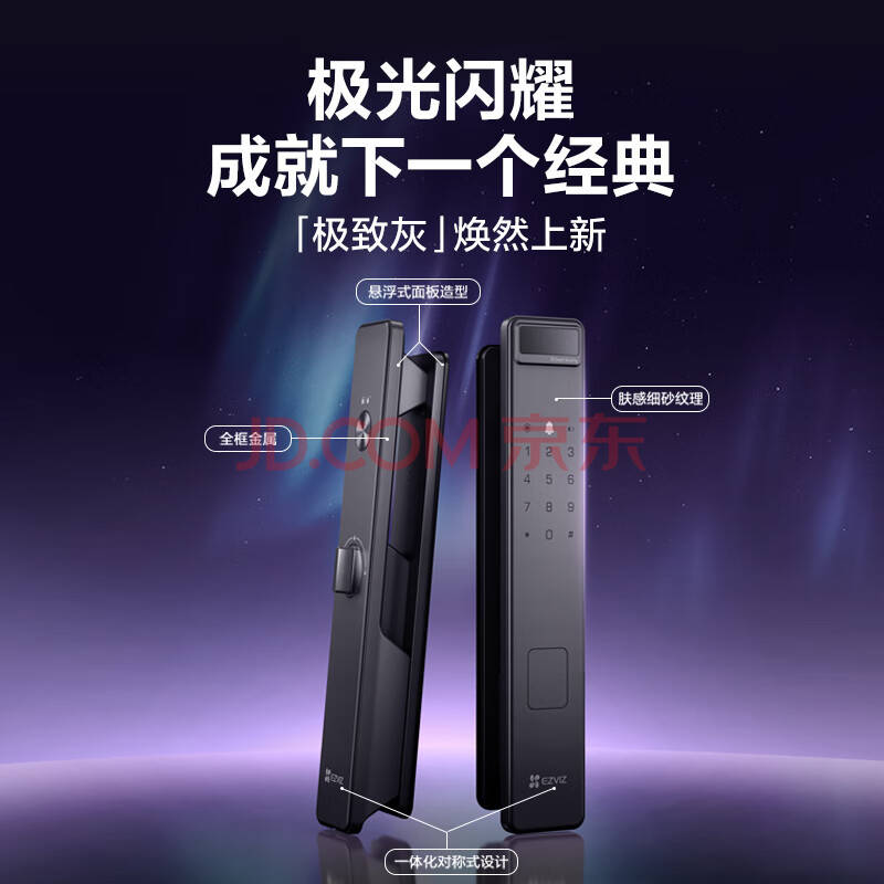 商品相册:萤石Y3000F极光人脸锁 极致灰 3D人脸识别无需指纹 家用全自动智能密码锁 C级锁芯防盗电子锁第