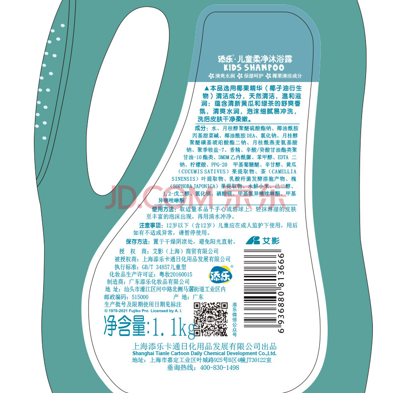 商品相册:添乐 哆啦A梦 儿童沐浴露 宝宝柔净温和氨基酸沐浴乳1.1L 3-6-9-12岁第