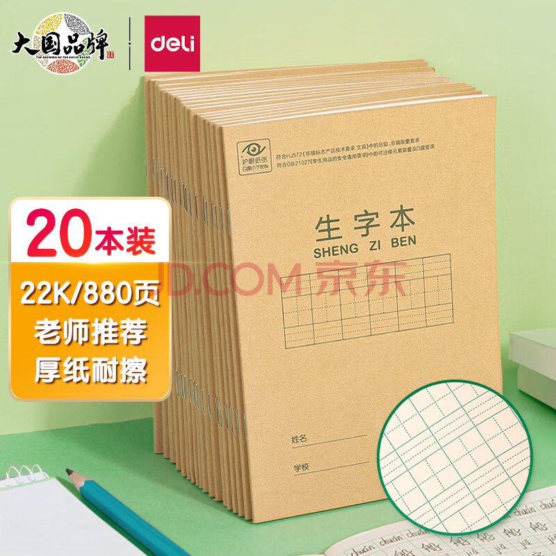 商品相册:得力(deli)22K20张小学生生字本作业本软抄本笔记本子文具 20本装D2222第