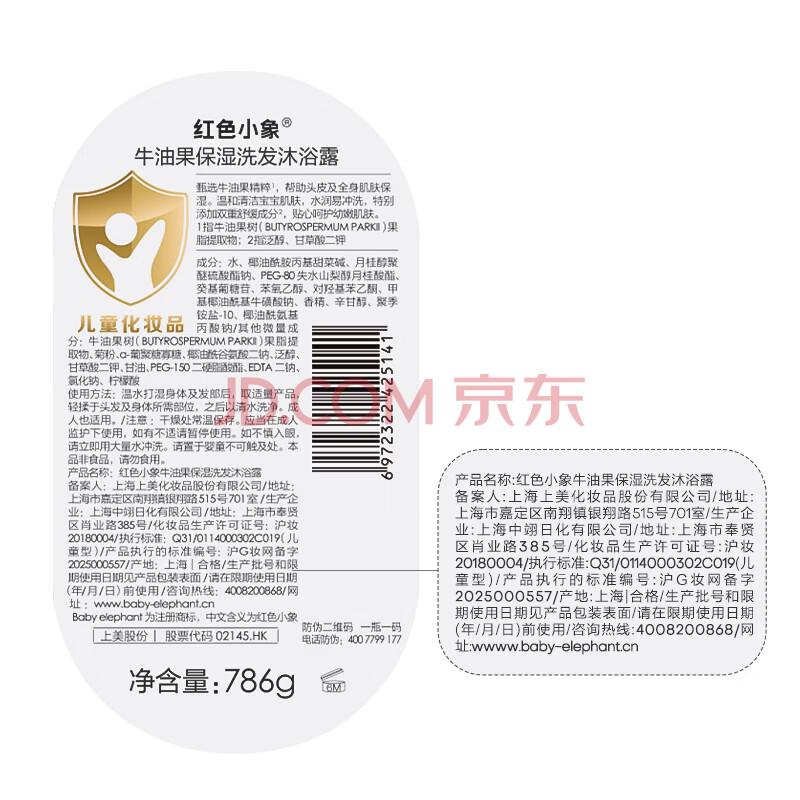 商品相册:红色小象儿童洗发水儿童沐浴露 牛油果保湿 婴儿洗发沐浴二合一786g*2第
