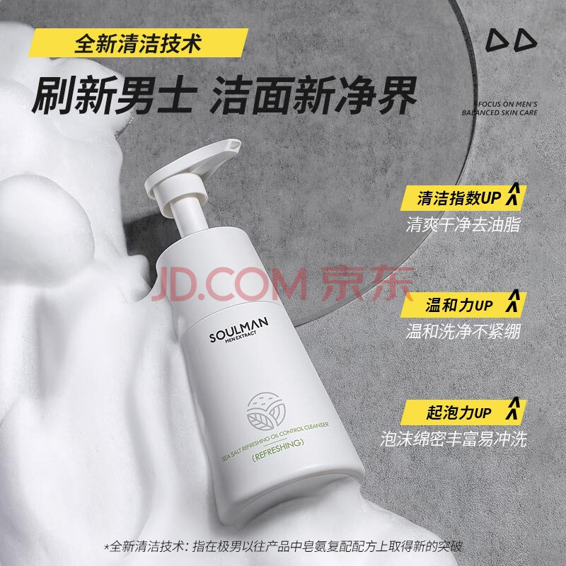 商品相册:极男男士护肤套装氨基酸海盐洗面奶+保湿霜250ml 补水保湿控油男洁面第