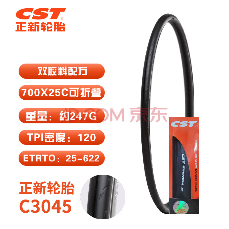 商品相册:正新轮胎自行车轮胎 700X25C C3045 防刺扎折叠胎公路车外胎适配喜德盛等第