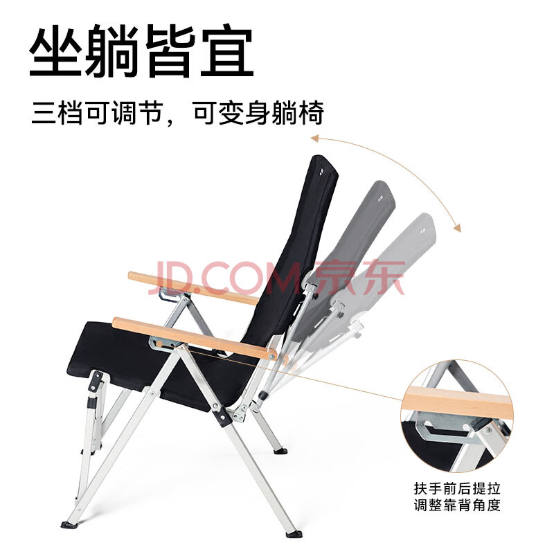商品相册:伯希和(Pelliot)户外折叠躺椅露营沙滩钓鱼椅便携休闲阳台靠背凳子16105715曜石黑第