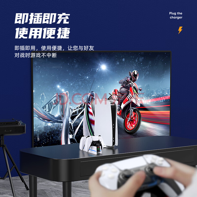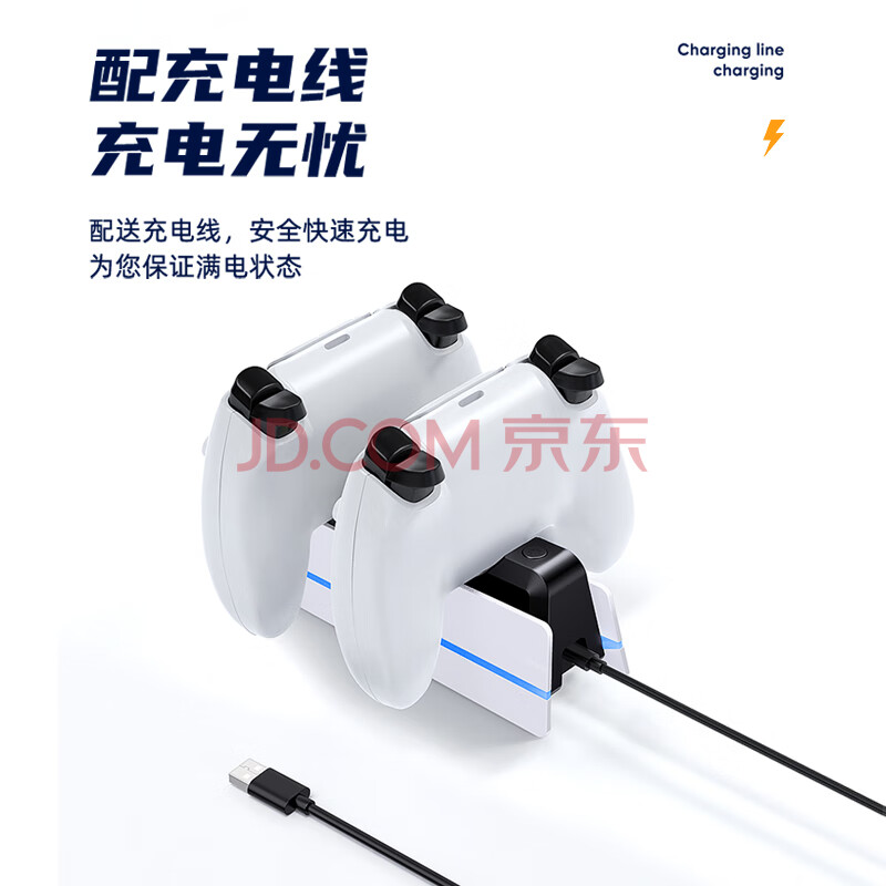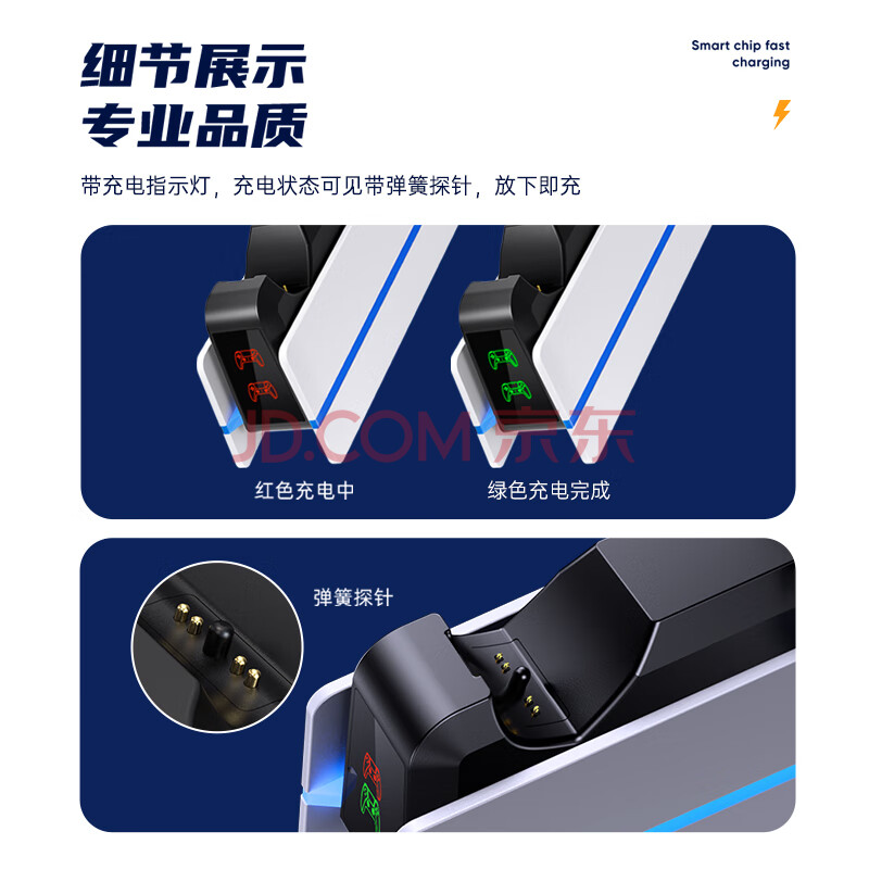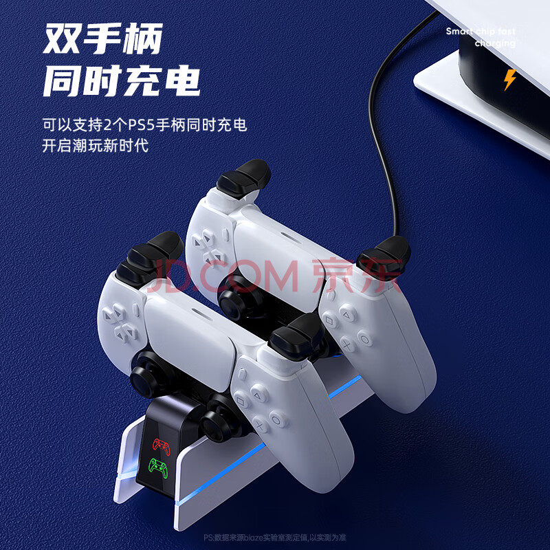 商品相册:毕亚兹 PS5手柄座充 适用于 PlayStation5无线手柄充电器 双手柄支架 ps5游戏手柄充电底座 带充电指示灯第