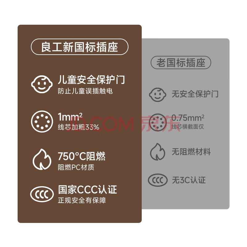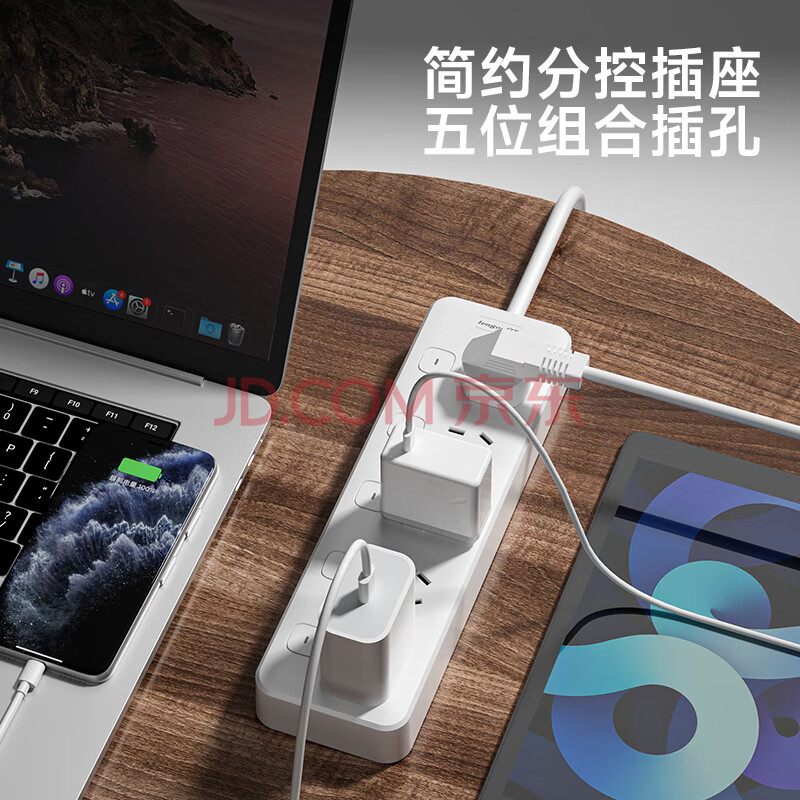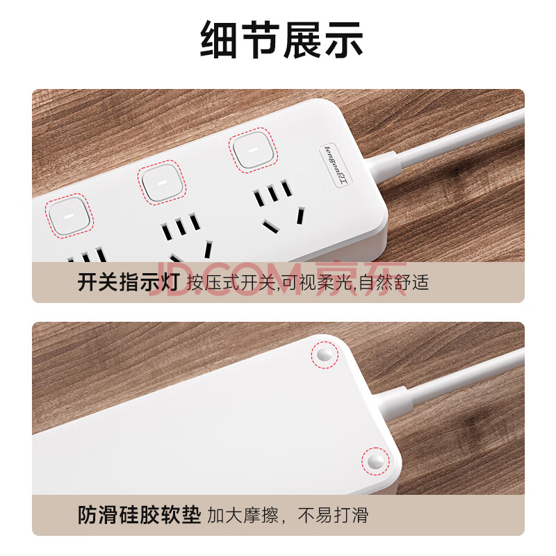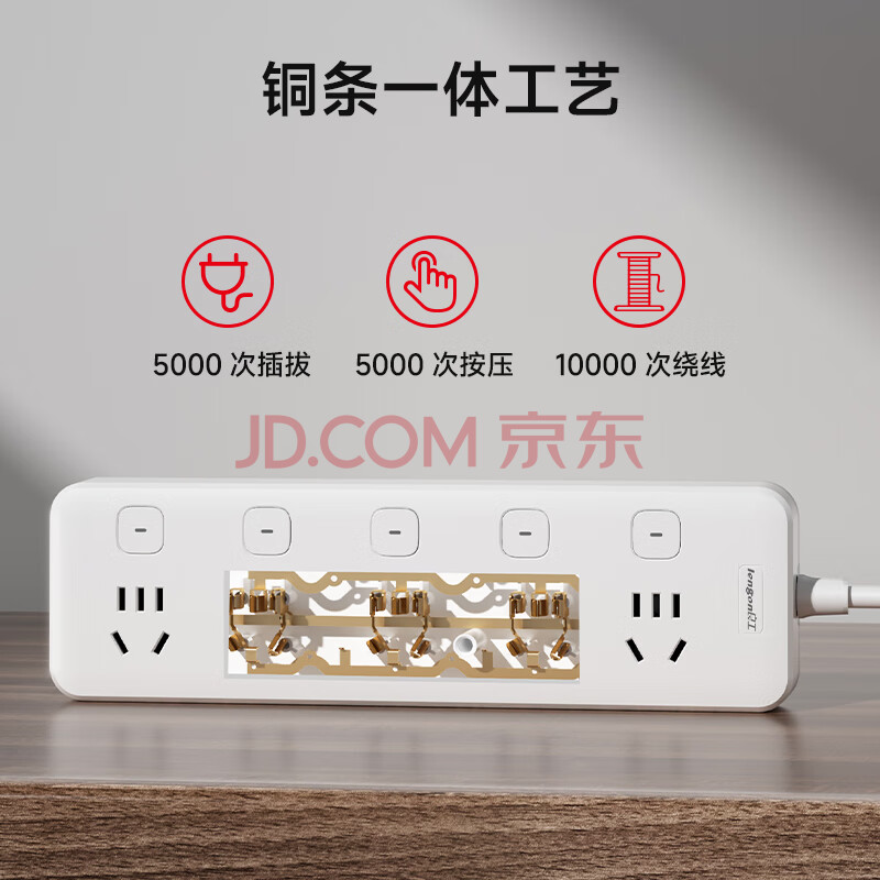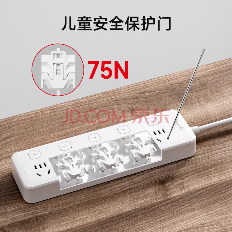 商品相册:良工(lengon)安全插座 分控5位1.8米 插排/排插/插线板/接线板/拖线板/宿舍家用办公插板 E05-1.8第