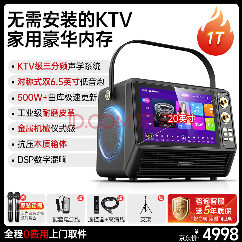 商品相册:威斯汀ktv音响家庭k歌一体机 卡拉ok点歌机显示屏 户外便携广场舞蓝牙音箱GLE320-1T家用版第