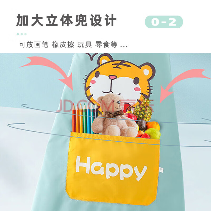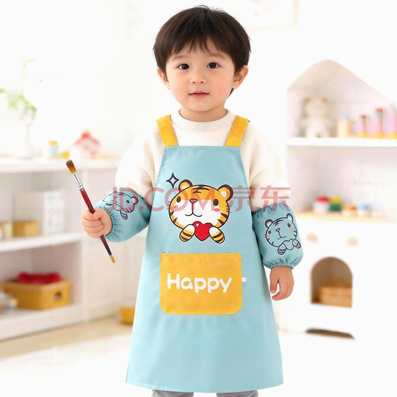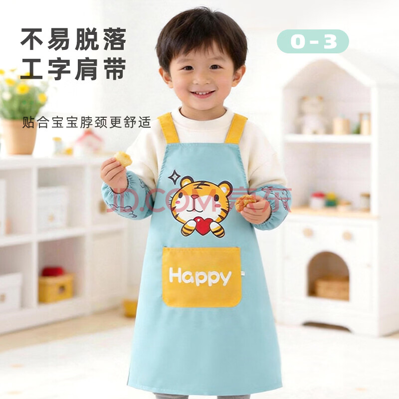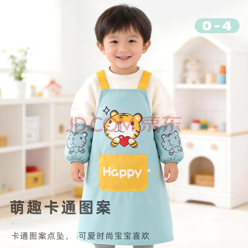 商品相册:9i9宝宝围裙防水儿童罩衣画画衣小孩吃饭衣防脏易擦反穿衣加袖套老虎第