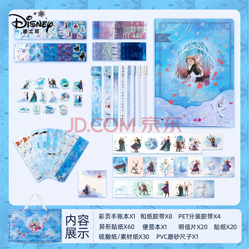 商品相册:迪士尼(Disney)手账本礼盒套装 儿童女孩生日礼物网红ins少女心记事本 学生笔记本文具套装 艾莎公主蓝第