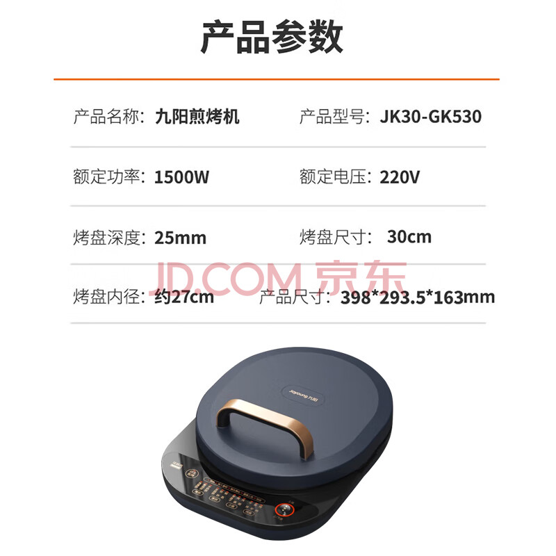 商品相册:九阳(Joyoung)电饼铛 加深可拆洗煎烙饼机双面独立加热多功能不粘烤盘智能触控 JK30-GK530第1张/共8