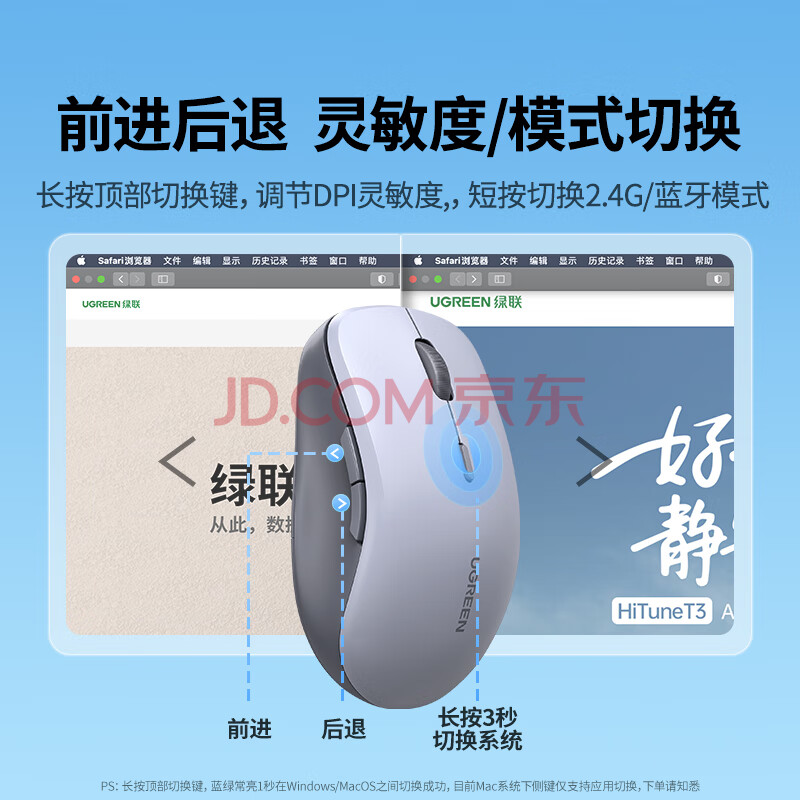 商品相册:绿联 无线鼠标 蓝牙鼠标 适用苹果Mac华为Matebook笔记本电脑iPad平板鼠标 台式机轻音办公双模鼠标第