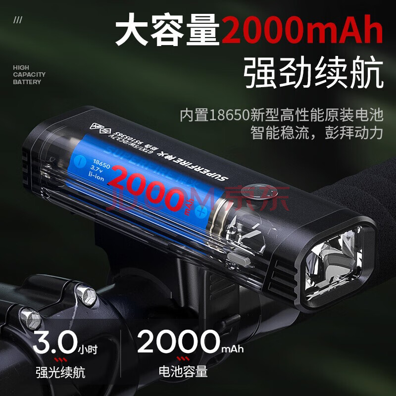 商品相册:神火(SupFire)德规自行车前灯夜行山地车公路车夜骑强光手电筒充电骑行装备配件第