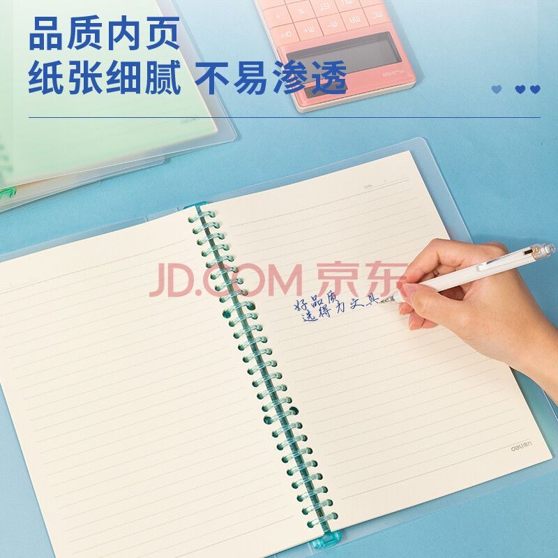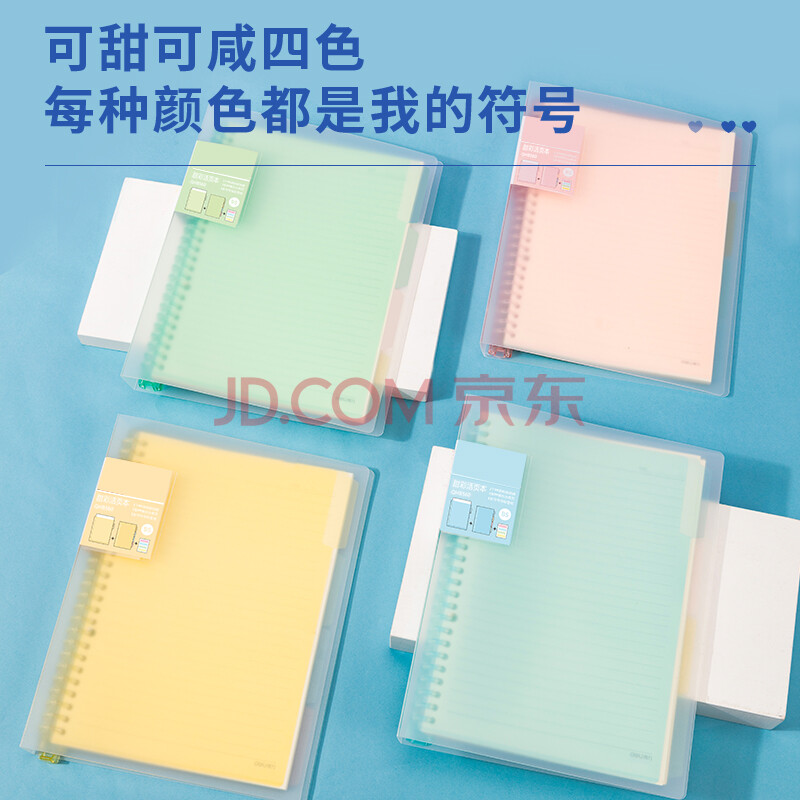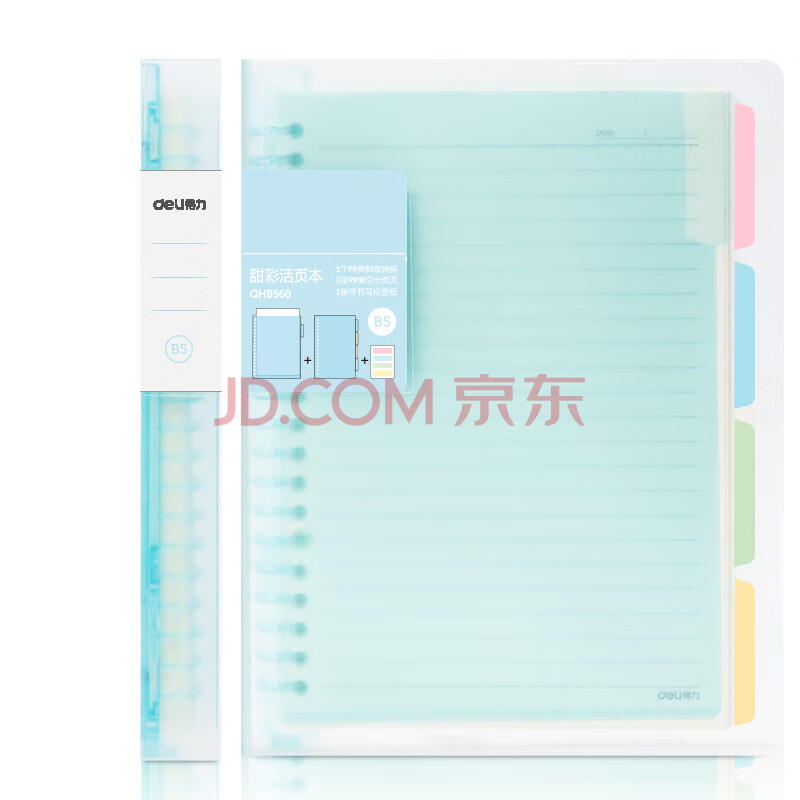 商品相册:得力(deli)甜彩系列26孔B5活页笔记本子 活页纸替换芯插袋4色索引分隔页开学必备 蓝色QHB560第