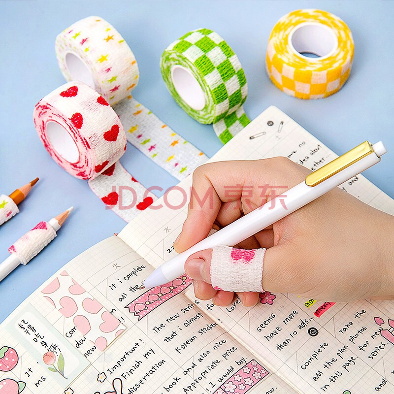 商品相册:三年二班学生写字护指绷带易撕弹性自粘关节保护套防磨写字握笔器运动固定手指绑带 大全套-8个装第1张/共6