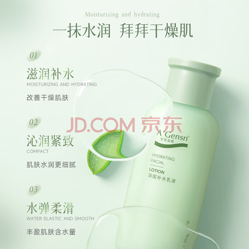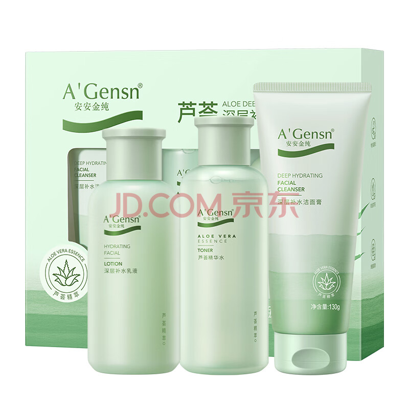 商品相册:安安金纯A'Gensn芦荟深层补水三件套(洁面膏130g+精华水200ml+乳液150g)第