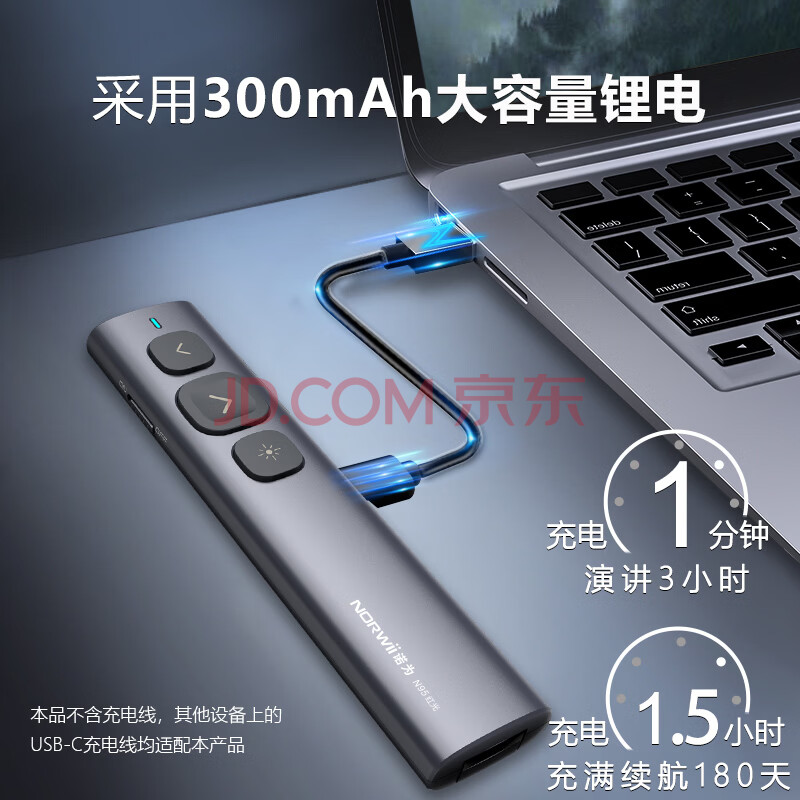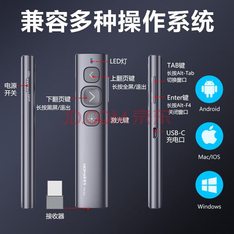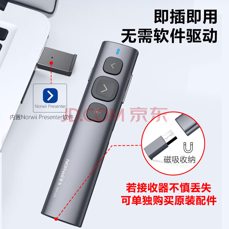 商品相册:诺为充电 PPT遥控翻页笔教师专用 希沃白板可用激光笔 支持超链切换教鞭100米远控360° 红光 N95第