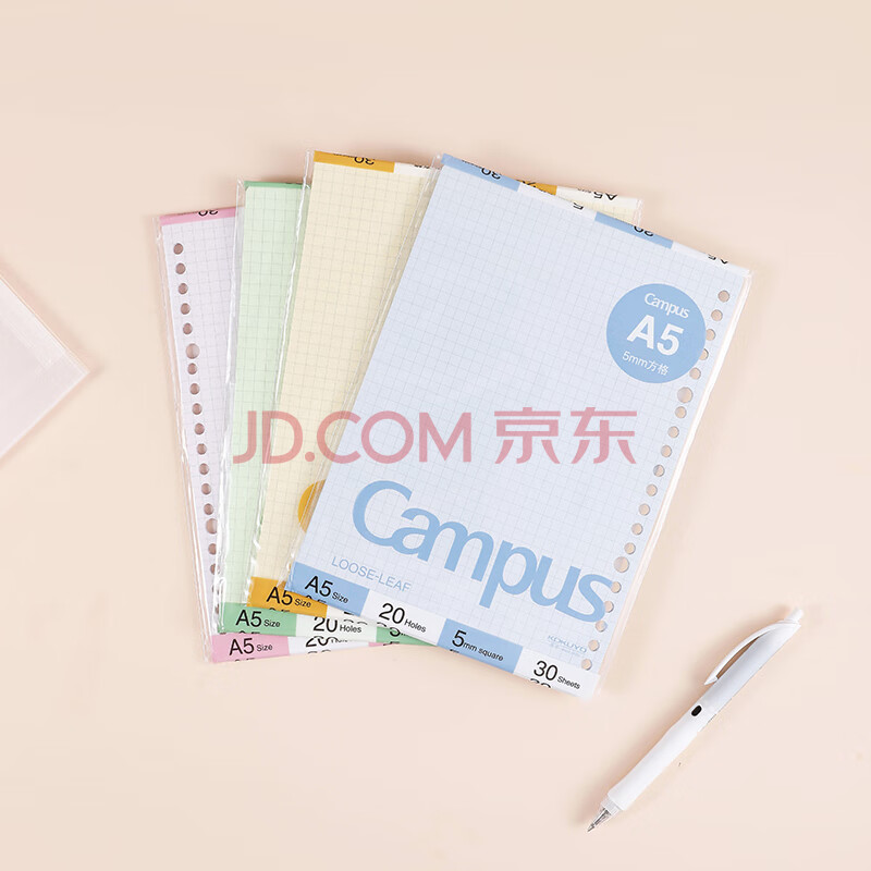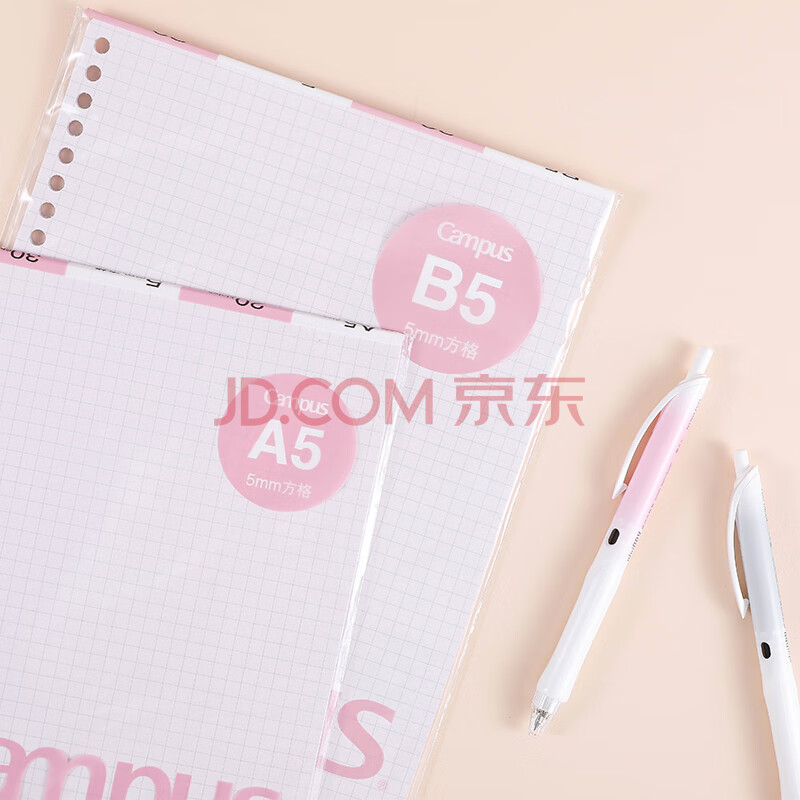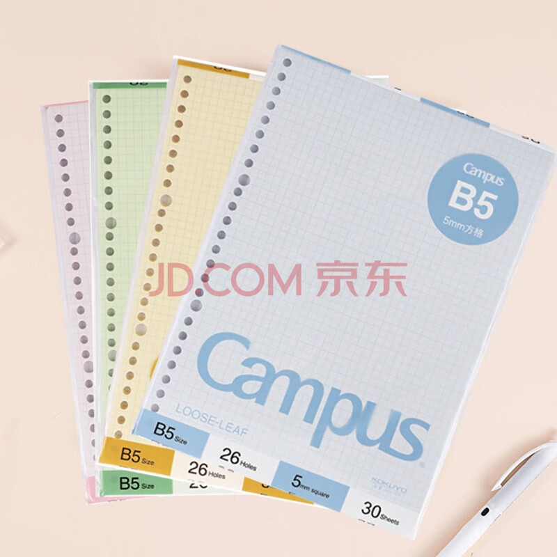 商品相册:国誉(KOKUYO)B5彩色活页纸Campus活页本替芯笔记本子活页纸内页 5mm方格 30张粉色1本 WCN-CLL1314P第