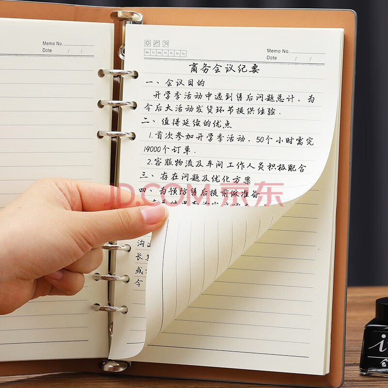 商品相册:嘉然恒 活页本a5加厚搭扣笔记本子文具简约记事本商务办公会议记录本可拆卸环扣活页学生日记本定制-棕色第