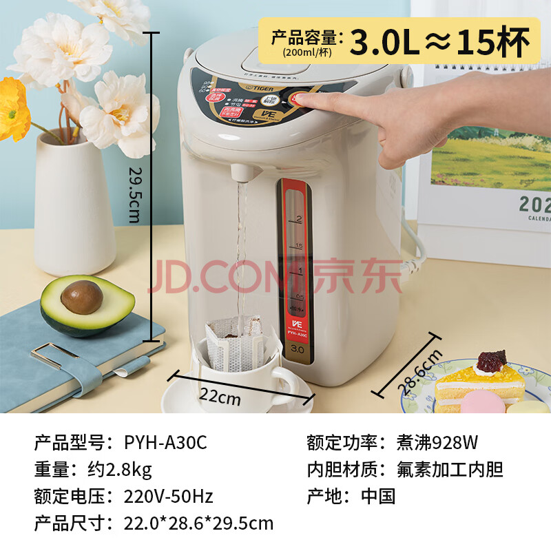商品相册:虎牌(TIGER)电热水瓶 智能3段真空保温防漏电热水壶PYH-A30C 3L电水壶第1张/共7