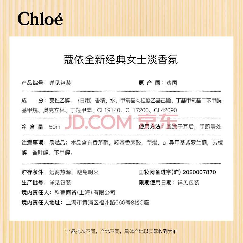 商品相册:蔻依(Chloe)全新经典女士淡香氛50ml节日礼物生日礼物送女友送老婆送女生第