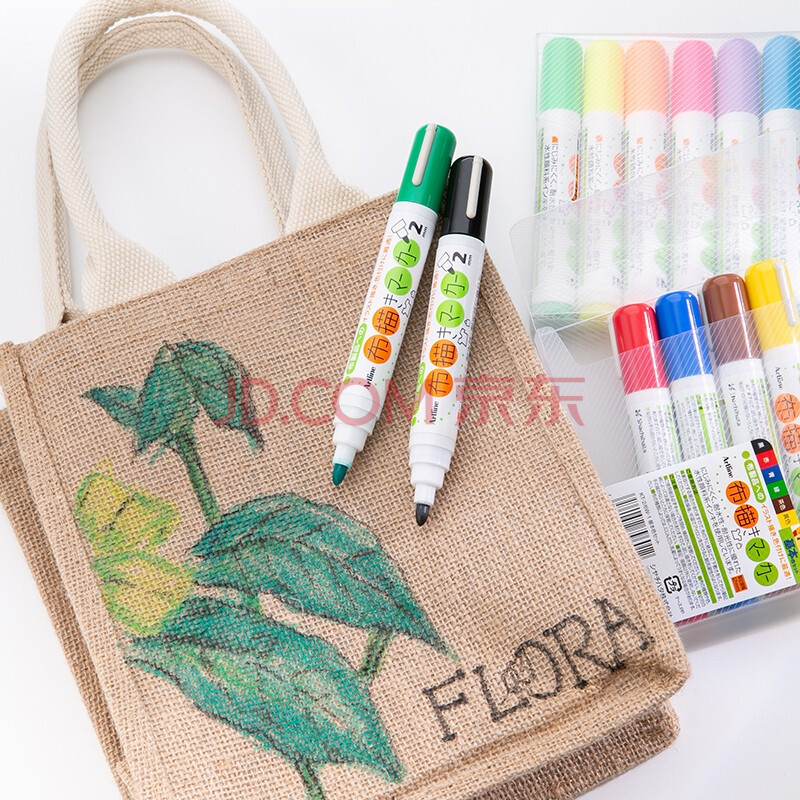 商品相册:【全网低价】旗牌(Shachihata)DIY纺织颜料衣服布料手绘涂鸦绘画T恤笔 双头 2.0-5.0mm 灰/蓝 EKT-25TT美术写生第