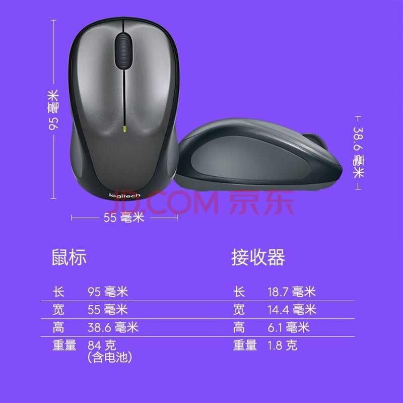 商品相册:罗技(Logitech)无线光电鼠标 办公鼠标 对称鼠标 带无线2.4G联接收器 M235 灰色第
