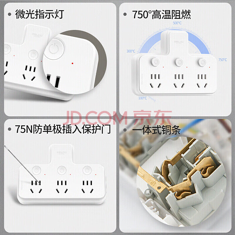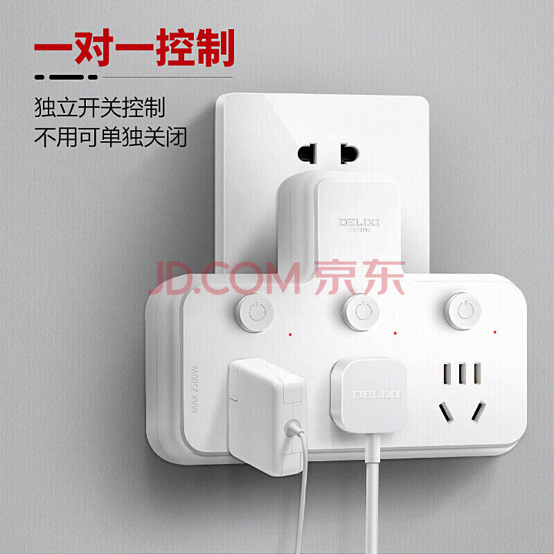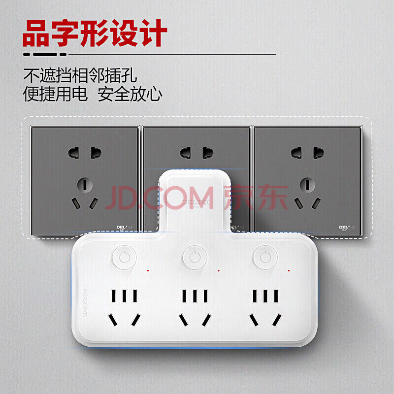 商品相册:德力西(DELIXI)转换插头/品字形一转三插座/无线转换插座/电源转换器/插排/排插 分控开关第
