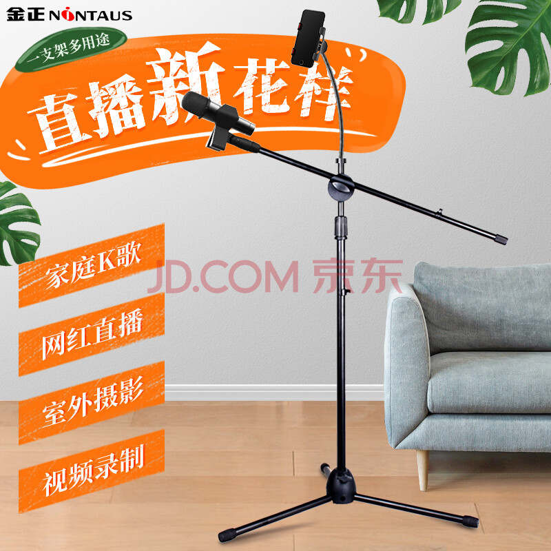 商品相册:金正(NINTAUS)HY-103B 手机落地支架 话筒支架麦克风支架手机直播支架演唱支架 360°旋转三脚伸缩支架第