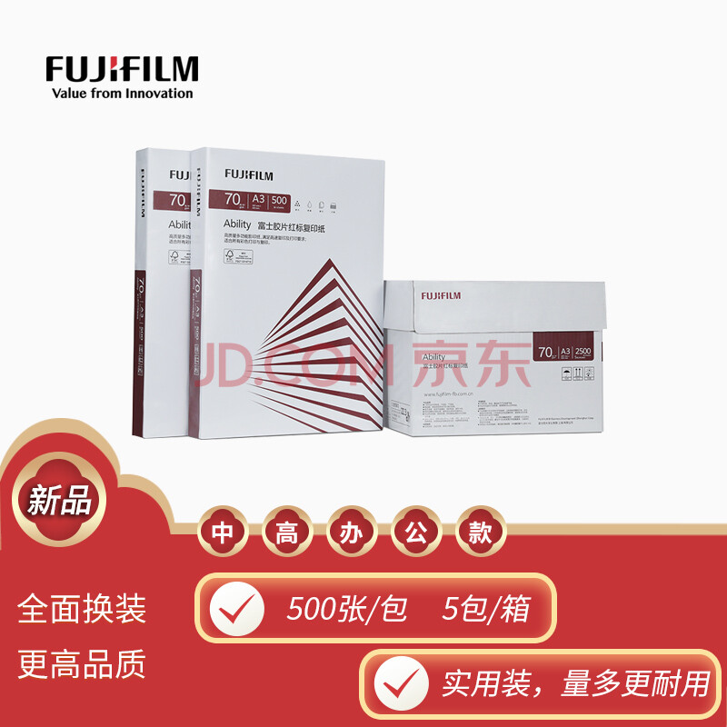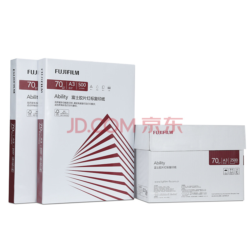 商品相册:富士(FUJIFILM)Ability 红标70g A3复印纸 500张/包 5包/箱(2500张) 打印纸 白纸a3 整箱第