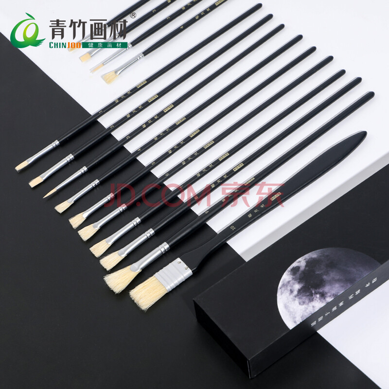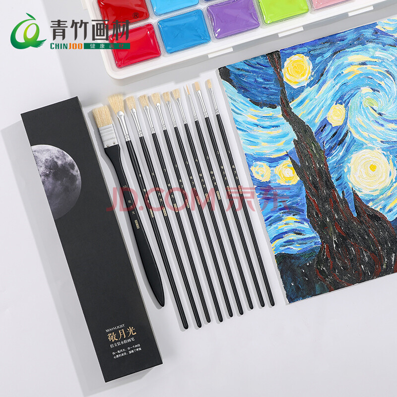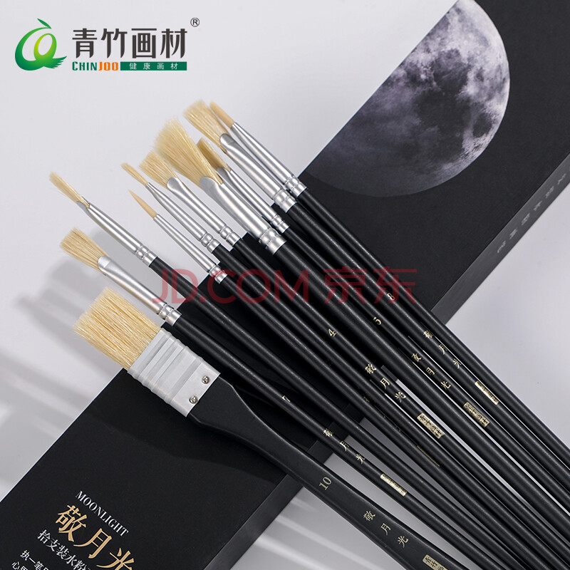 商品相册:青竹画材(CHINJOO)【全网低价】敬月光水粉画笔10支套装黑色丙烯画笔油画笔颜料画笔美术专用美术写生第
