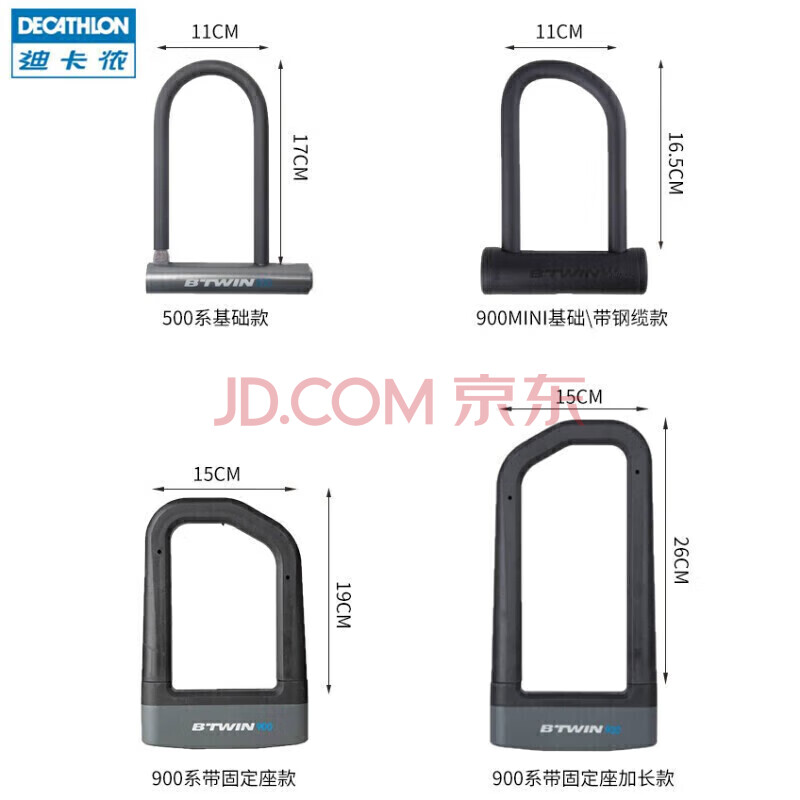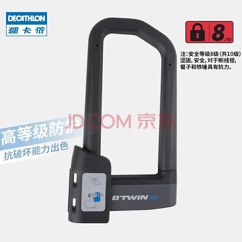商品相册:迪卡侬自行车U型锁高强度防盗锁电瓶车抗剪威慑UBB500基础款 836486第