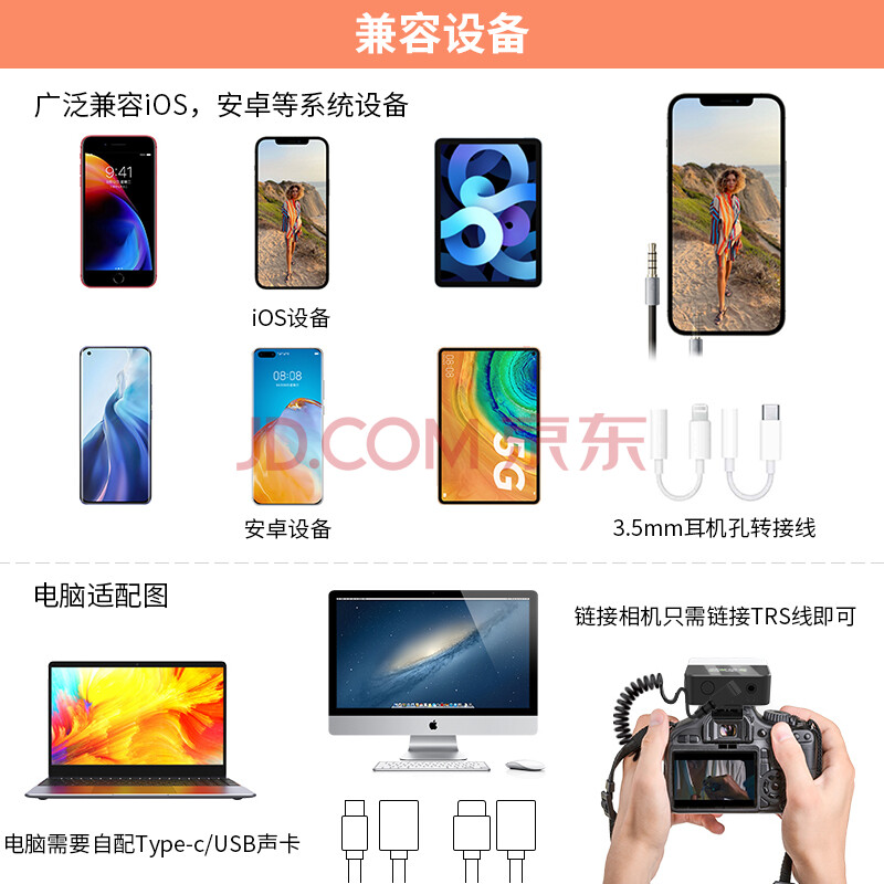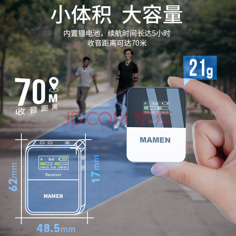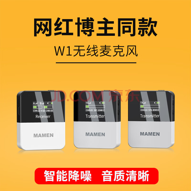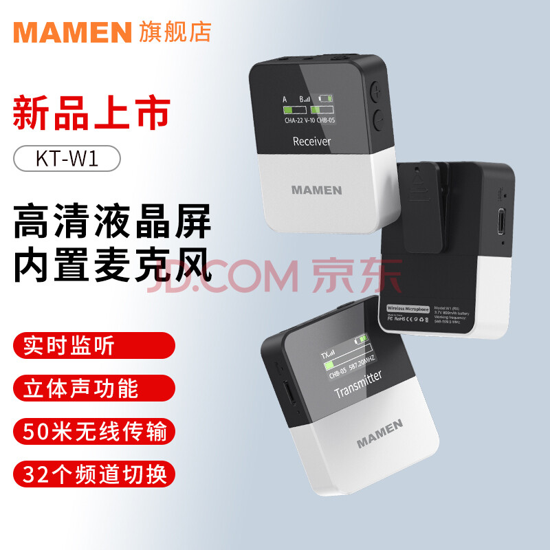 商品相册:慢门(MAMEN)无线麦克风领夹式话筒专业采访小蜜蜂手机相机单反Vlog吃播抖音短视频拍摄一拖二 KT-W1第